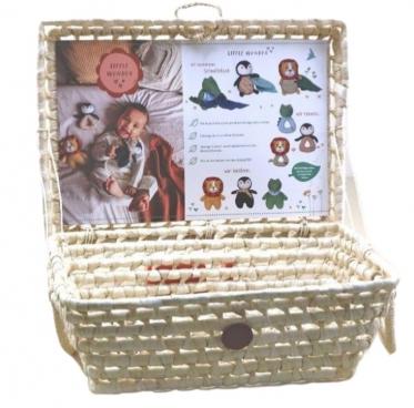 Material: Corn Husk woven basket with wood button